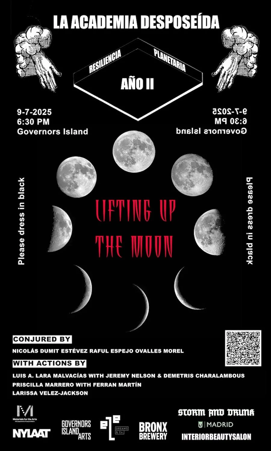 In Wicca, Drawing Down the Moon, which is also the title of a classic publication by Margot Adler, points to the practice of invoking the Goddess as symbolized by the moon, and hence inviting her to enter the High Priestess. In the case of this nocturnal curation, Nicolás asks three Latinx dancers to raise energy from the Earth and to send it up to Spirit or Life Force, whatever their own personal understanding of this concept might be. The three actions in question are meant to be kindled during the night, and within the echoes and reverberations of New York City’s urban web of noises, sounds, creatures, and energies. This program arises from Nicolás’s belief that what is referred to as Art today initially served a spiritual purpose, that is, before devolving into a profession, tradable objects–corpses– and consumable/ marketable events; a spectacle. With this in mind, all three movements in Lifting Up the Moon are meant to return art, in whatever modest ways this might be possible, back into the sacred, especially at a time when patriarchy and capitalism are acting upon a necrophiliac agenda, and when the call is to resist and honor GAIA and creation/emanation, including its satellite the Moon.