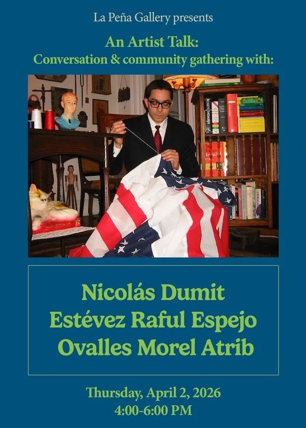 During his presentation at La Peña, Nicolás Dumit Estévez Raful Espejo Ovalles Morel Atrib reconnects with neighbors and friends in Austin, where in 2024 he launched La Escuelita: A Latinx Evening School for Critical Consciousness / The Austin Texas Chapter. He will share documentation of the project and reflect on how his studio at the University of Texas at Austin became a week-long escuelita—a small, community-centered school within both the campus and the city at large. Bringing together neighbors and participants from diverse backgrounds, the program featured classes, workshops, panels, talks, performances, and lectures grounded in lived Latinx experiences.
